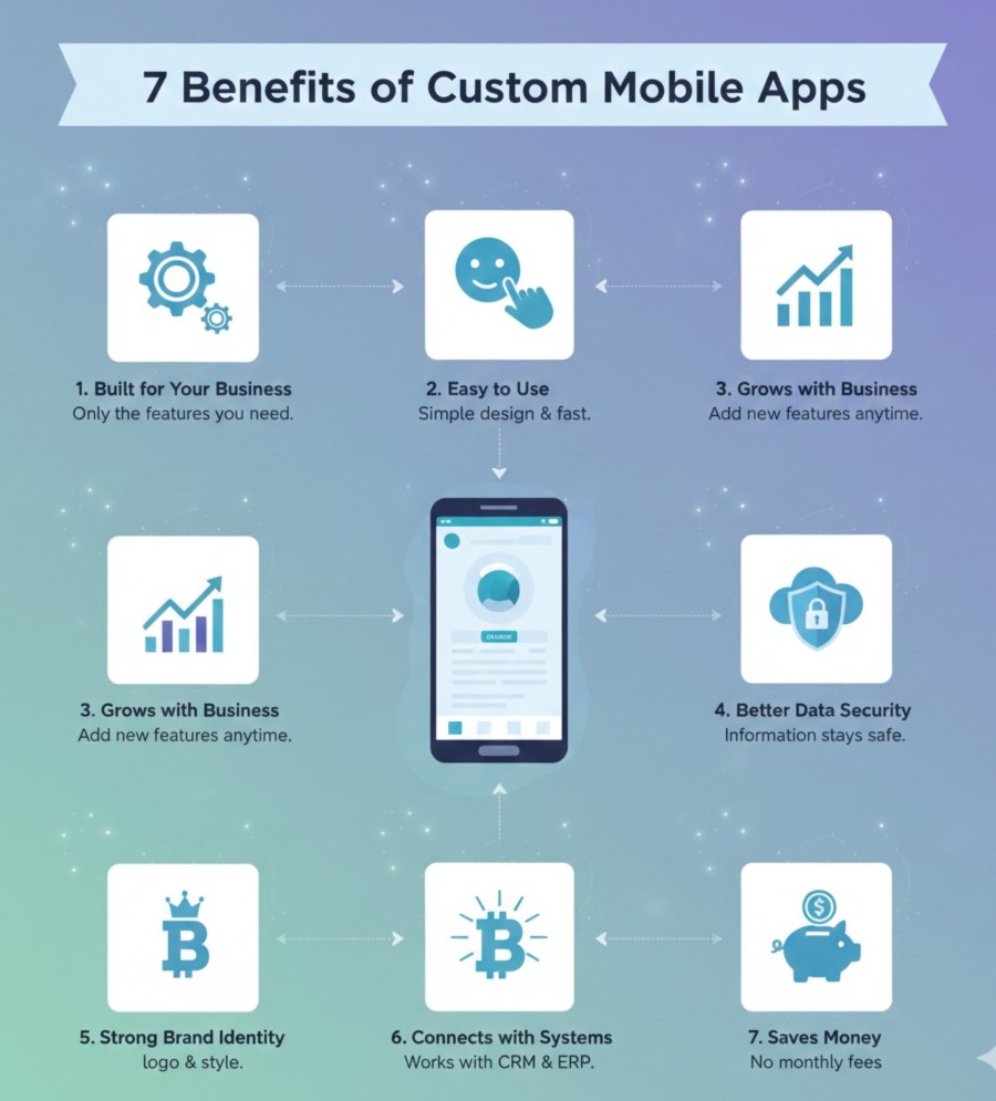 A custom mobile app is built only for your business.